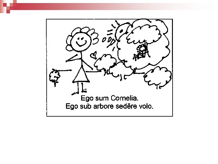 Ego sum Cornelia. Ego sub arbore sedere volo. Tu es Marcus. Tu adhuc dormis, Marce! Sextus est puer strenuus. Sextus non dormit sed surgit. Nos sumus Cornelia et Flavia. Nos sub arbore sedemus et legimus. Vos estis mei amici. Vos ad meam villam venitis. Marcus et Sextus sunt pueri. Pueri meam villam intrant.