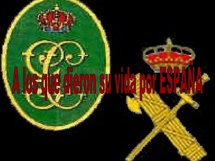 Quiero rendir mi homenaje a todos aquellos valientes que vertieron su sangre en la calles cumpliendo con su deber, a ellos que supieron morir con honor y valentía, a todos los miembros de la Guardia Civil que dieron su vida por España Sólo os pido que dediquéis unos minutos en su recuerdo y miréis detenidamente sus rostros para que nadie jamás olvide la barbarie cometida. A MIS VALIENTES GUARDIAS. ¡¡ARRIBA ESPAÑA!! ¡¡VIVA ESPAÑA!! Conecta los altavoces y pulsa INTRO