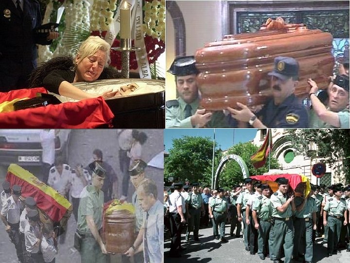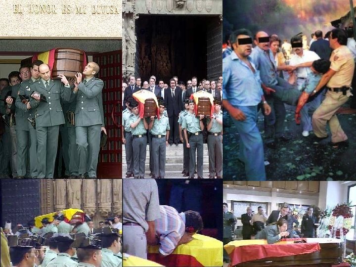 Pedro Galnares Barrera Cristóbal Martín Luengo Guardia Civil – 26 años Subteniente – 50 años 14 de julio de 1987 08 de septiembre de Oñate - Guipúzcoa 1987 Bilbao Federico Carro Jiménez Manuel Ávila García Cabo 1º -- 29 años Guardia Civil – 22 años 09 de septiembre de 1987 Guernica Antonio Mateo Melero Emilio Capilla Tocado Cabo 1º -- 32 años Guardia Civil – 38 años 01 de noviembre de 1987 11 de diciembre de 1987 Ordicia - Guipúzcoa Zaragoza José Ballarin Cazaña José Luís Gómez Solís Cabo 1º -- 31 años Sargento – 44 años 11 de diciembre de 1987 Zaragoza Soraluze – Guipúzcoa