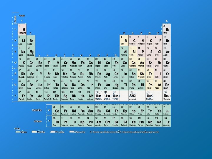 TABLA PERIODICA Y BLOQUES 1 2 3 4 5 6 7 8 9 10 11 12 13 14 15 16 17 18 I A VIII A 1 H II A IIIA IV A VII A He 2 Li Be B C N O F Ne 3 Na Mg III B IV B VIII B Al Si P S Cl Ar 4 K Ca Sc Ti V Cr Mn Fe Co Ni Cu Zn Ga Ge As Se Br Kr 5 Rb Sr Y Zr Nb Mo Tc Ru Rh Pd Ag Cd In Sn Sb Te I Xe 6 Cs Ba La Hf Ta W Re Os Ir Pt Au Hg Tl Pb Bi Po At Rn 7 Fr Ra Ac Rf Db Sg Bh Hs Mt Uun Uuu Uub Uut Uuq Uup Uuh Uus Uuo 6 Ce Pr Nd Pm Sm Eu Gd Tb Dy Ho Er Tm Yb Lu lantánidos 7 Th Pa U Np Pu Am Cm Bk Cf Es Fm Md No Lr actínidos