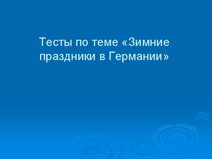 Quiz «Winterfeste in Deutschland» Feste hat man überall sehr gern. In Deutschland gibt es viele traditionelle Feste, die im Leben jedes Deutschen eine groβe Rolle spielen. Im Dezember und Januar feiern die Deutschen viele Feste. Was wissen Sie über diese Feste? Testen Sie sich!