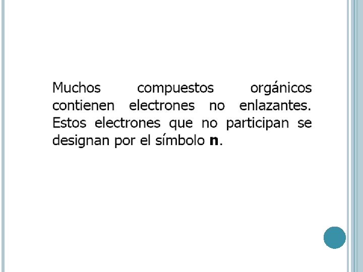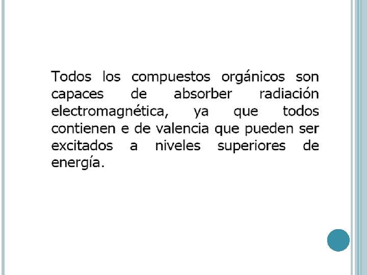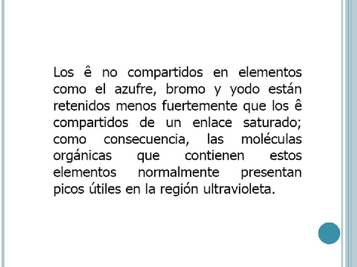 Los electrones que contribuyen a la absorción en el UV-VIS son los compartidos que participan en la formación del enlace entre átomos y los que están unidos a más de un átomo.