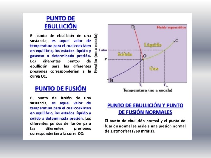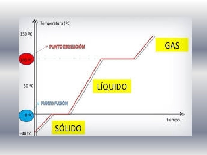 Puntos de fusión y ebullición Si calentamos agua, rápidamente empieza a humear y, tras un rato, entra en ebullición, con lo que deja de encontrarse líquida y se convierte en un gas, el vapor de agua. Otro tanto ocurre si la introducimos en el congelador y la enfriamos, poco a poco pasa a convertirse en hielo y pasa del estado líquido al sólido. En general, que una sustancia se encuentre en estado sólido, líquido o gaseoso depende de su temperatura. Pero aunque el cambio de un estado a otro no se produce de forma súbita, sino gradualmente, poco a poco, durante un intervalo de tiempo mensurable, mientras ocurre esta transformación, la temperatura no cambia, sino que permanece constante sin variar