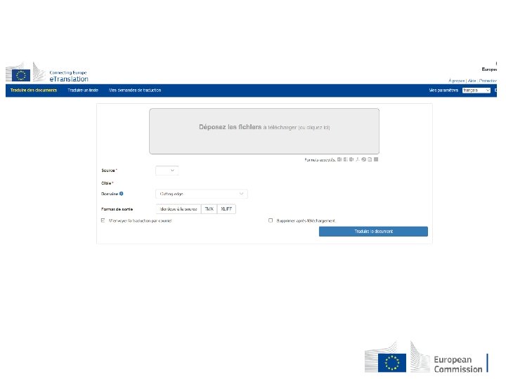 Language technology • • e. Translation Euramis Interinstitutionally used CAT tool Other language applications, eg. Quest search, DGTVista, QA tools, etc.