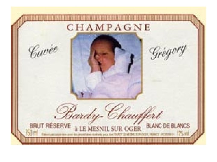 Particularité régionale • En Champagne, et surtout dans les familles de vignerons, il arrive parfois que l’on baptise aussi les chiens voire les chats… ou d’autres animaux. • Les vignerons possèdent de grandes quantités de champagne et ainsi peuvent laisser leur fantaisie s’exprimer. Tout peut se prêter au baptême.
