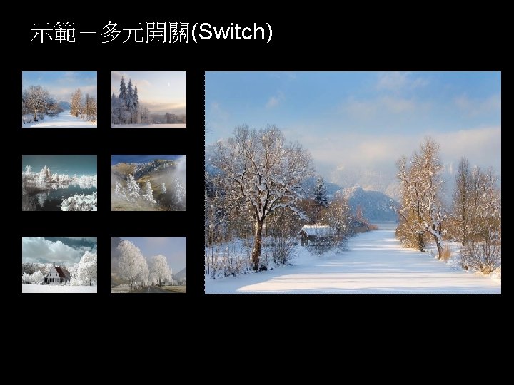 R E Mayer 2009 Coherence Principle Signaling Principle Slides: 9 Download presentation 多媒體學習的十二個設計原則(R. E. Mayer, 2009) • 減低外在處理的設計原則 – 連貫原則 (Coherence Principle) – 信號原則(Signaling Principle) – 累贅原則(Redundancy Principle) – 空間接近原則(Spatial Contiguity Principle – 時間接近原則(Temporal Contiguity Principle) • 三個管理本體處理的設計原則 – 分割原則 (Segmenting Principle) – 事先訓練原則(Pre-training Principle) – 形式原則(Modality Principle) • 四個增加衍生處理的設計原則 – 多媒體原則(Multimedia Principle) – 個人化原則(Personalization Principle) – 聲音原則(Voice Principle) – 圖像原則(Image Principle) exercise 多媒體學習的十二個設計原則(R. E. Mayer, 2009) • 減低外在處理的設計原則 – 連貫原則 (Coherence Principle) – 信號原則(Signaling Principle) – 累贅原則(Redundancy Principle) – 空間接近原則(Spatial Contiguity Principle – 時間接近原則(Temporal Contiguity Principle) • 三個管理本體處理的設計原則 – 分割原則 (Segmenting Principle) – 事先訓練原則(Pre-training Principle) – 形式原則(Modality Principle) • 四個增加衍生處理的設計原則 – 多媒體原則(Multimedia Principle) – 個人化原則(Personalization Principle) – 聲音原則(Voice Principle) – 圖像原則(Image Principle) exercise 示範-多元開關(Switch) exercise 示範-多元開關(Switch)