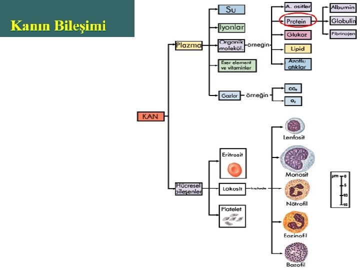 KAN PLAZMASI • Hacminin, %90 -92` si su, geriye kalanın çoğunluğunu plazma proteinleri oluşturur. • Aminoasitler, karbonhidratlar, yağlar, tuzlar, potasyum, kalsiyum, magnezyum, klorit, anorganik iyot, hormonlar, enzimler, üre, ürik asit, laktik asit ve antikorlar