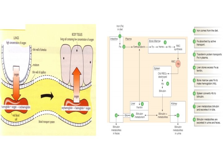 Hemoglobin • globulin + hem • Her bir molekül Hb 4 molekül oksijen taşır • O 2 taşıyan Hb • CO 2 taşınımına yardım eder
