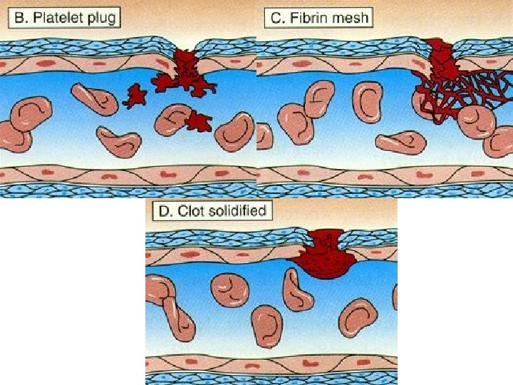 Damar hasarı büyükse kan pıhtısı oluşur • 1 -2 dk içinde pıhtılaşma başlar • 3 -6 dk’da pıhtı tamamlanır • 20 -60 dk’da pıhtı büzüşür