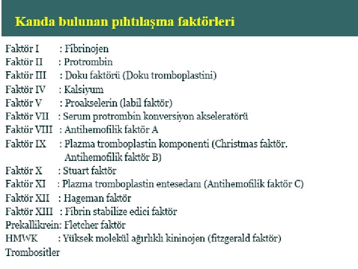 Kan Pıhtılaşma Testleri • Kanama Zamanı 1 -6 dk • Pıhtılaşma zamanı 6 -10 dk • Protrombin zamanı 12 sn