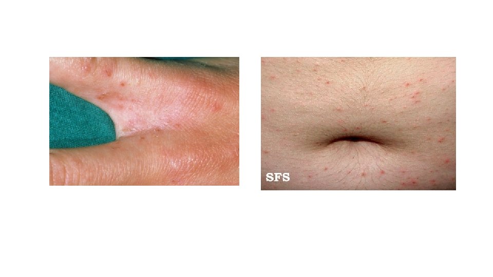 Scabies • Sarcoptes scabei var hominis: specific for humans • Sarcoptes scabei var canis: animal mite, rarely causes infection in humans • Tramsmission 1. Acquired through direct, prolonged, skin-to-skin contact with an infected person(i. e. , same household). 2. Sexual contact. It is an STI 3. ? Fomite ( infected clothing, bedding)
