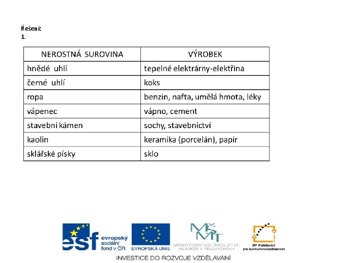 Řešení: 2. . ropa 3. hnědé uhlí vápenec kaolin černé uhlí pískovec