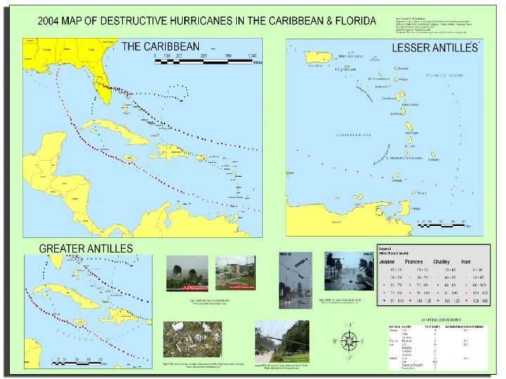 Scientific Factors influencing Hurricanes v The climate change due to increasing amounts of anthropogenic ``greenhouse" gases may result in increased tropical sea surface temperatures (SSTs) and increased tropical rainfall associated with a slightly stronger intertropical convergence zone (ITCZ). Because tropical cyclones extract latent and sensible heat from the warm tropical oceans and release the heat in its upper tropospheric outflow to fuel the storm's spin up, early work of the IPCC expressed concern that warmer SSTs will lead to more frequent and intense hurricanes, typhoons and severe tropical cyclones. v Any changes in tropical cyclone activity are intrinsically also tied to large-scale changes in the tropical atmosphere. As a result, SSTs by themselves cannot be considered without corresponding information regarding the moisture and stability in the tropical troposphere. What has been identified in the current climate as being necessary for genesis and maintenance for tropical cyclones (e. g. SSTs of at least 26. 5°C - Gray 1968) would change in an enhanced CO 2 world because of possible changes in the moisture or stability. It is quite reasonable that an increase in tropical and subtropical SSTs would be also accompanied by an increase in the SST threshold value needed for cyclogenesis because of compensating changes in the tropospheric moist static stability (Emanuel 1995). v In addition to thermodynamic variables, changes in the tropical dynamics also play a large role in determining changes in tropical cyclone activity. For example, if the vertical wind shear over the tropical North Atlantic moderately increased during the hurricane season in an increased CO 2 world As what is typically seen during El Niño-Southern Oscillation warm phases (El Niño events), then we would most likely see a significant decrease in tropical cyclone activity. This is due to the Atlantic basin having a marginal climatology for tropical cyclone activity because of its sensitivity to changes in vertical wind shear and lack of an oceanic monsoon trough (Gray et al. 1993). In other less marginal tropical cyclone basins, changes in the vertical shear profile typically result in alterations in the preferred location of development (e. g. Nicholls 1979, Chan 1985, Revell and Goulter 1986, and Lander 1994).