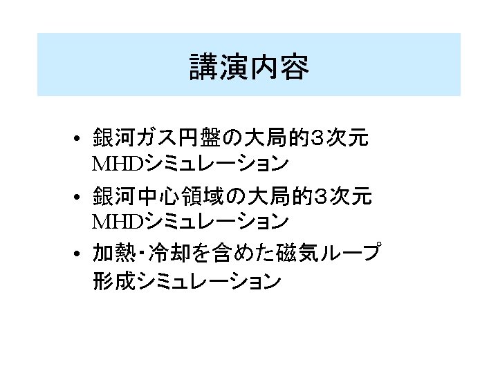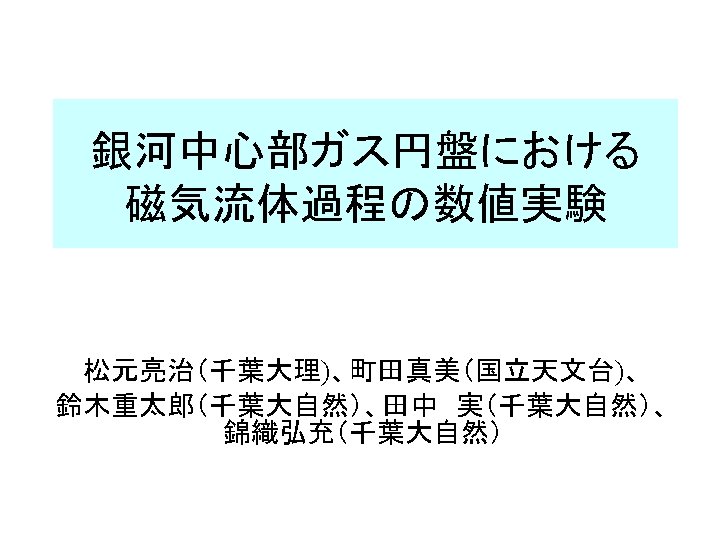 銀河ガス円盤のMHDシミュレーション Nishikori, H. , Machida, M. , and Matsumoto, R. , Ap. J 641, 862 (2006)