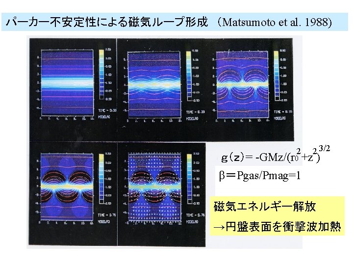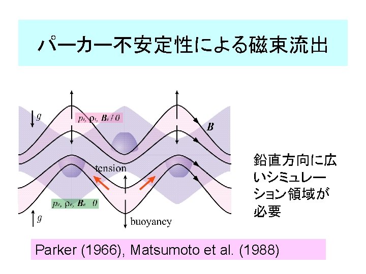 2 D MHD simulations of Parker instability Fukui et al. (2006)