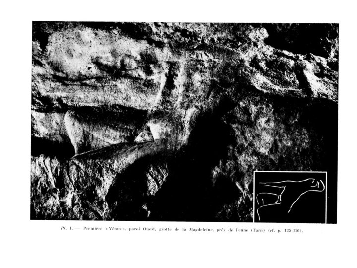 2. L’abris de la Madeleine, en Dordogne, France, donne le nom à la période entre -15000 et -10000, appelée aussi le magdalénien. Les Vénus de la Madeleine: Nous retrouvons ce procédé d’utilisation du relief existant accentué par la taille de l’artiste, dans les représentations gravées dans les parois de la grotte de la Madeleine (Dordogne, France). La représentation d’un corps de femme, trouvée dans la roche, est accentué et complété par la taille de l’artiste.