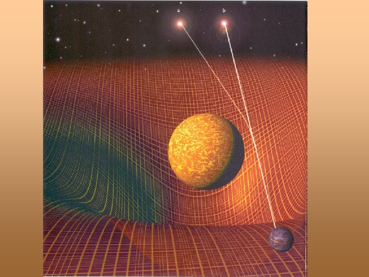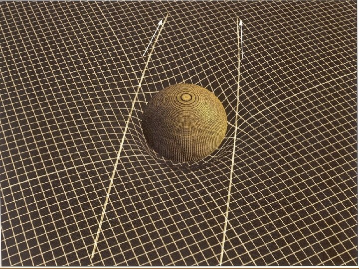 General Relativity Motion is defined by the curves that minimise the length of the trajectory (geodete) measured over spacetime Hence light is bend in gravitational fields