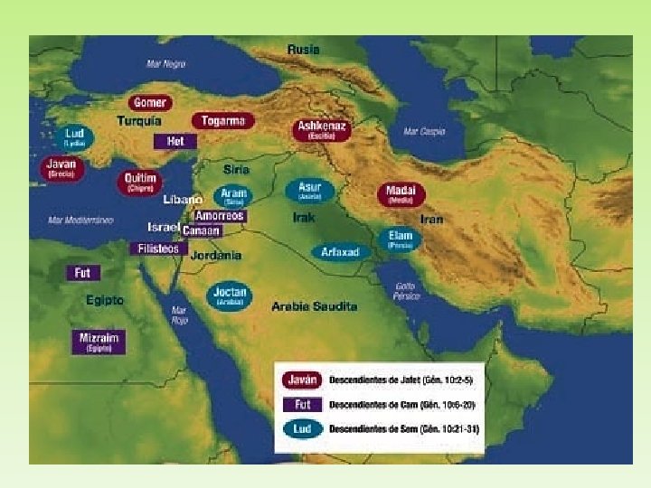 II. Descendientes de Noé Génesis 10 Ø Poblamiento de la tierra a partir de la Mesopotamia Ø De Sem hasta Abram Ø Llamado y promesa para Abram Ø Agar e Ismael Ø Isaac – Jacob /Esaú Ø Tierra: Gen. 12 Ø Desc. : Gen. 15; Gen. 17: 16 – 27 Ø Destino Ismael Gen. 16: 6 – 16 Gen. 25: 1 – 18 Ø Jacob / Esaú Gen. 28: 10 – 14
