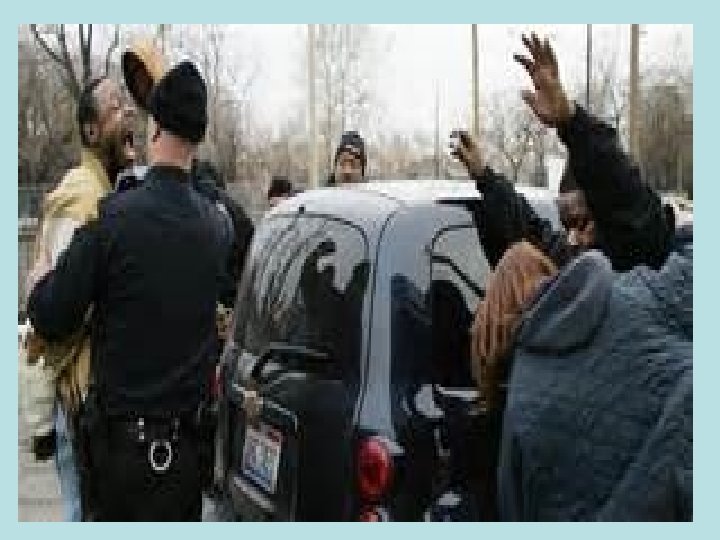E. A typical traffic stop resulting from racial profiling 3. The driver and passengers are ordered out of the vehicle ordered