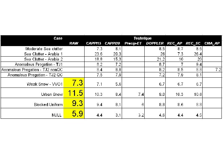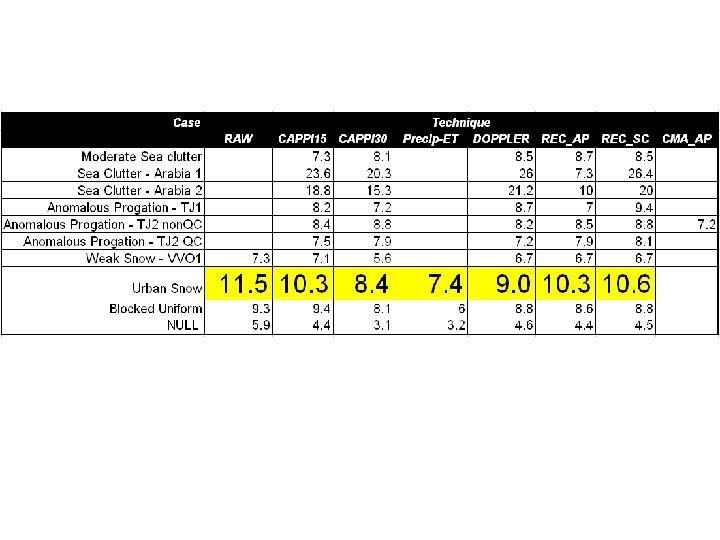 Sample Cases • • Uniform with local clutter (XLA) Uniform with partial blocking (WVY) Urban Clutter/Niagara Escarpment (WKR) Strong Anomalous Propagation Echo (TJ 2006) Strong AP with Weather (TJ 2007) Sea Clutter (Sydney AU, Kurnell) Sea Clutter / Multi-path AP (Saudi 2002) Convective Weather with Airplane Tracks - One season (TJ Radar 2007)