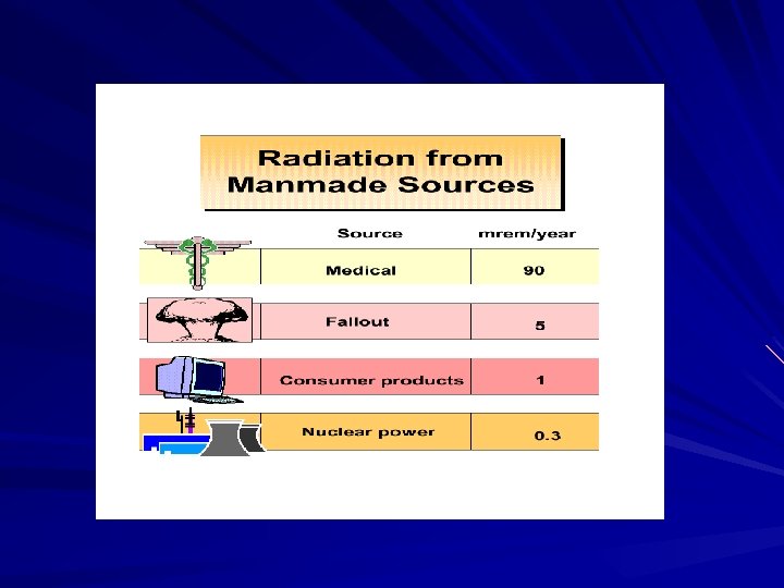 Your Annual Exposure Activity Smoking Typical Dose 280 millirem/year Radioactive materials use in a UM lab <10 millirem/year Dental x-ray Chest x-ray 10 millirem per xray 8 millirem per xray 5 millirem/year Drinking water Cross country round trip by 5 millirem per trip air 0. 165 Coal Burning power plant millirem/year