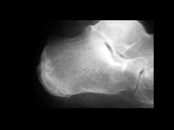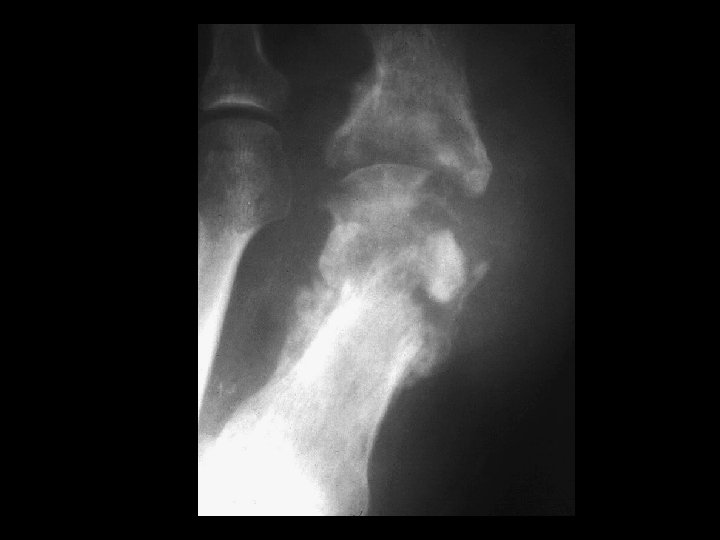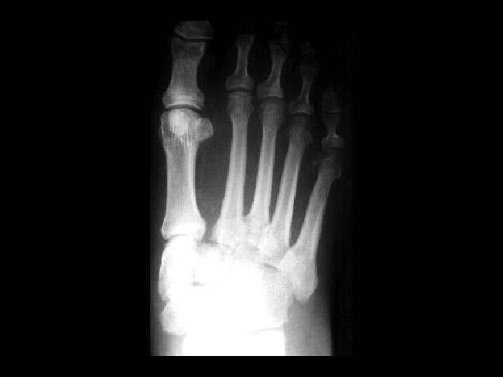Septic Arthritis • Findings: – Lytic and sclerotic destruction of the great toe MTP joint – Joint space narrowing – Periosteal reaction – Soft tissue swelling • ddx: – Charcot joint