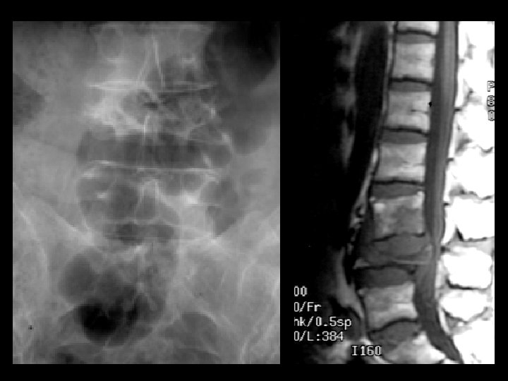 Potts Disease • Findings: – Complete collapse of L 4 and cauda equina compression – Subligamentous soft tissue extension to L 3 body • ddx: – Staph aurius – Gram negatives (IVDA)