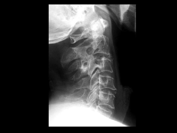 Dens metastasis, pathologic fracture, and C 1 -2 instability • Findings: – 8 mm anterior subluxation of C 1 on C 2 with flexion – Conventional tomogram shows C 2/dens lytic lesion and pathologic fracture • ddx: – Rheumatoid – Dens fracture