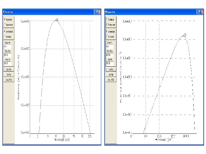 Using wavenumbers Using wavelengths c 2 /T B( , T) = c 1 3 / [e -1] (m. W/m 2/ster/cm-1) (max in cm-1) = 1. 95 T (max in cm)T = 0. 2897 B( max, T) ~ T**3. B( max, T) ~ T**5. E = B( , T) d = T 4, o c 1 T = c 2/[ ln(______ + 1)] 5 B E = B( , T) d = T 4, o c 1 3 T = c 2 /[ln(______ + 1)] B c 2 / T B( , T) = c 1 /{ 5 [e -1] } (m. W/m 2/ster/ m)