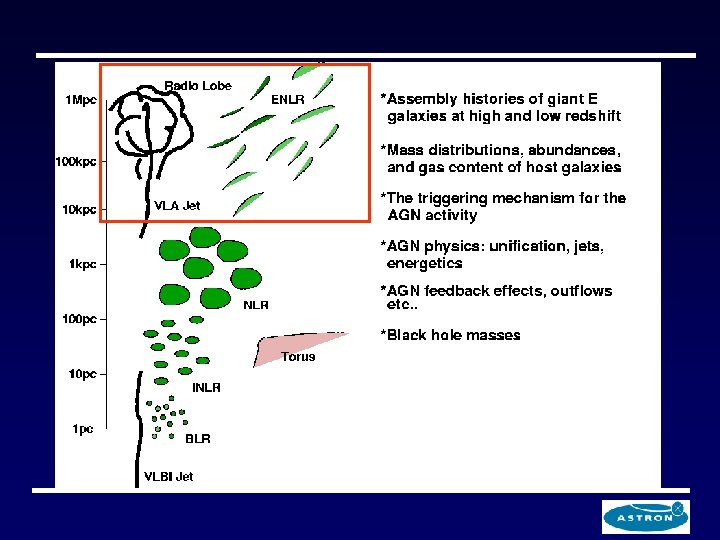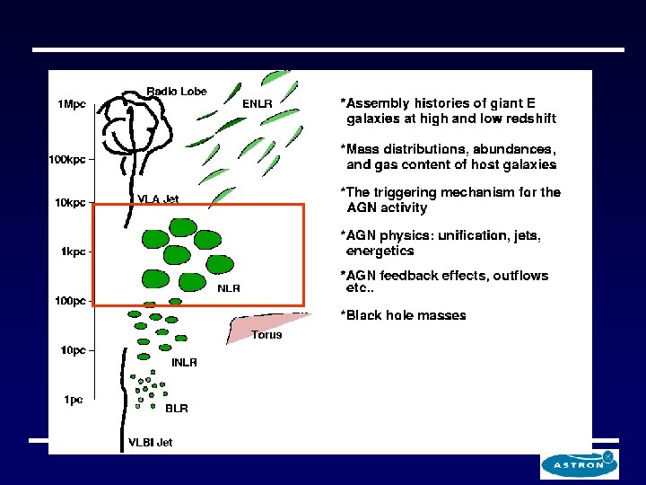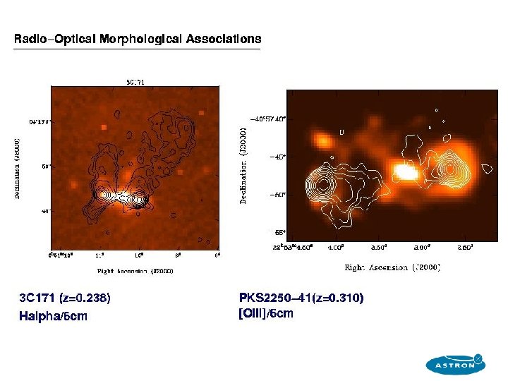 Radio galaxies at high redshift § Morphology of the extended emission line regions depends on the size of the radio source § Alignment between the emission lines and the radio axis § Interaction between radio and medium: does this also trigger star formation?