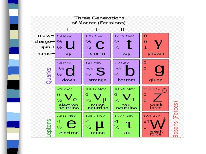 Leptons e+ νe μ + νμ τ + ντ Up quarks Charm quarks 1 u 3|Vud c 3|Vcd| 2 2 d | d 1 u 3|Vus| cs 3|Vcs| 2 2 s 1 u 3|Vub c 3|Vcb| 2 2 b | b