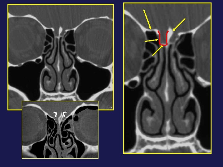 Récessus frontal + cellules de l’Agger Nasi : Pneumatisation des cellules de l’AN → calibre du RF Récessus étroit = canal frontonasal