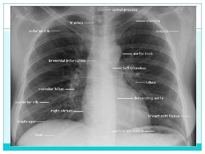 OBJETIVOS Recordar los parámetros básicos de evaluación de calidad radiográfica. Aprender un sistema de lectura para la radiografía de torax. Reforzar el conocimiento para realizar un enfoque radiográfico de los aparatos respiratorio y cardiovascular