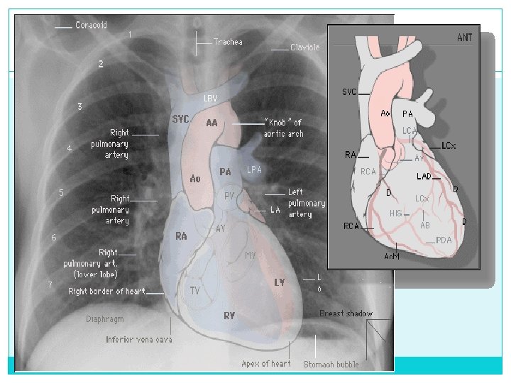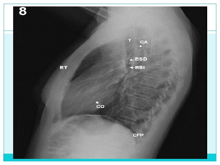 1) Indice cardiotorácico CT index = (MRD + MLD) ID § 0 -3 sem: 0. 55 § 4 -7 sem: 0. 58 § 1 año: 0. 53 § 1 -2 años: 0. 49 § 2 -6 años: 0. 45 § > 7 años: < 0. 5
