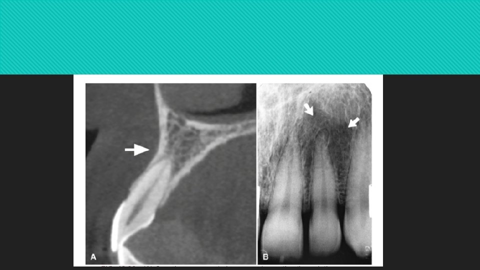 Cervical burnout On periapical and bitewing radiographs, diffuse radiolucent areas with ill-defined borders may be apparent radiographically on the mesial or distal aspects of teeth in the cervical regions between the edge of the enamel cap and the crest of the alveolar ridge.