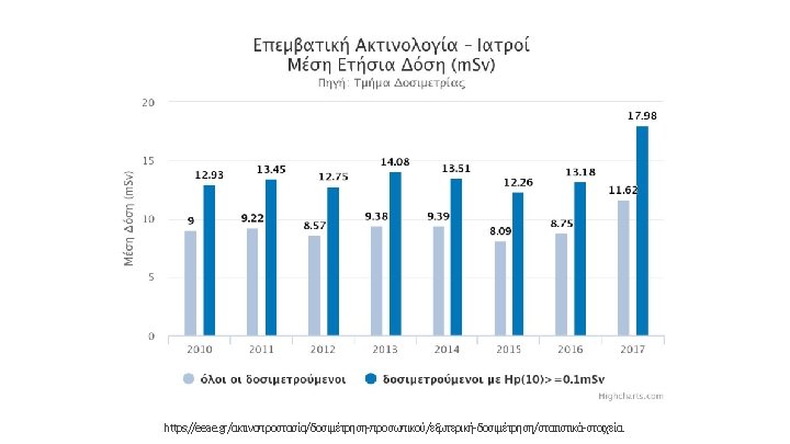 Dose to patient (Gy*cm 2) Υπάρχει ισχυρή συσχέτιση μεταξύ της δόσης ακτινοβολίας ασθενούς και προσωπικού! Dose to operator (μSv) Heilmaier et al. 2016. Combined Use of a Patient Dose Monitoring System and a Real-Time Occupational Dose Monitoring System for Fluoroscopically Guided Interventions