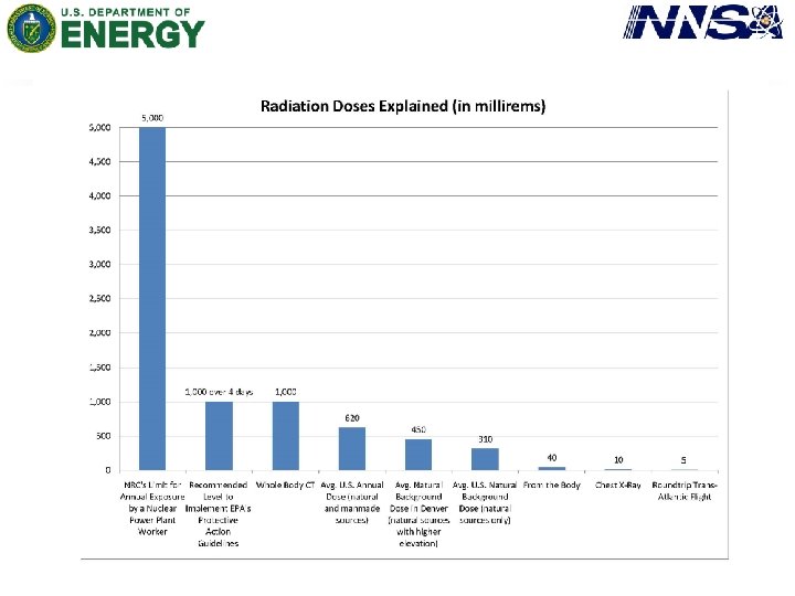 Context • The Nuclear Regulatory Commission estimates that the average American absorbs 620 m. Rem a year* (or 0. 071 m. Rem/hour) • An average transatlantic flight produces an exposure of 2. 5 m. Rem* • A typical chest x-ray produces 10 m. Rem per image • EPA guidelines call for public health actions if exposure exceeds 1000 m. Rem over 4 days * Source: NRC: http: //nrc. gov/images/about-nrc/radiation/factoid 2 -lrg. gif