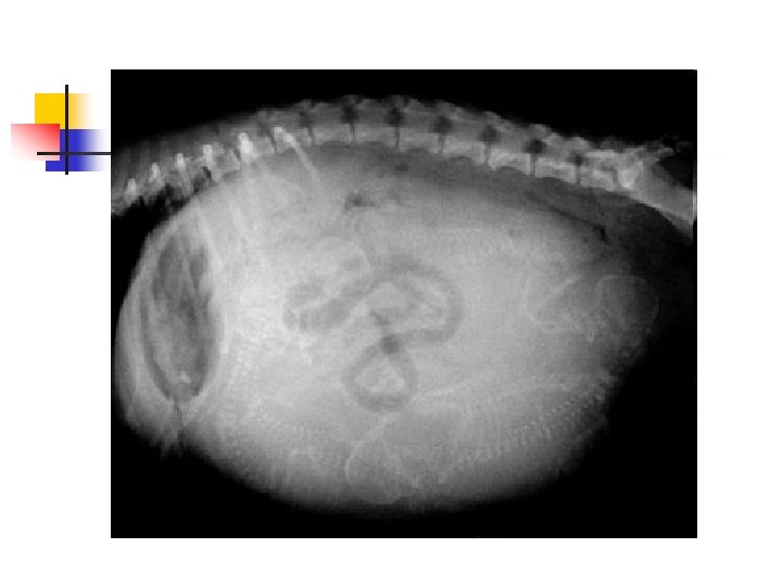 Lateral Restraint for Abdomen Radiographs n n Lateral view-dog is in right lateral recumbency. Hind legs are extended caudally to prevent them from overlying the bladder. Sandbag as for lateral thorax. Central beam penetrates approximately the last rib, but it is more accurate to include the cranial most or caudal most border on the film