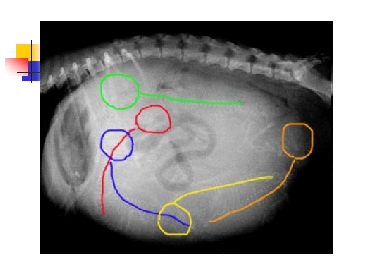VD Restraint for Abdomen Radiographs n n Dog is in dorsal recumbency. Sandbags as for VD thorax. Central beam penetrates approximately through the umbilicus, but it is more accurate to include the cranial most or caudal most border on the film The light field is collimated to include as much abdomen as possible with the cranial or caudal border of interest included.