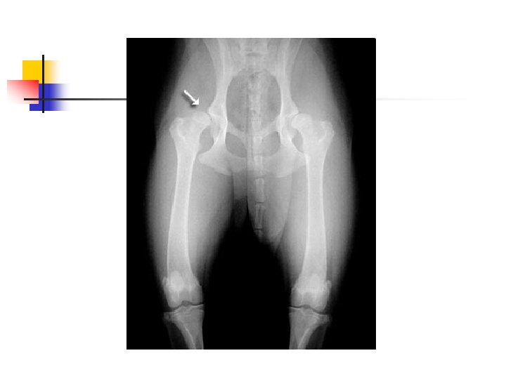 Lateral Pelvic Radiographs in Dogs n n Lateral view-Dog lying on affected side (to prevent image magnification and distortion by placing side of interest closest to the film). Affected leg is neutral, unaffected leg is pulled back a moderate amount dorsally with the goal of keeping the pelvis lateral