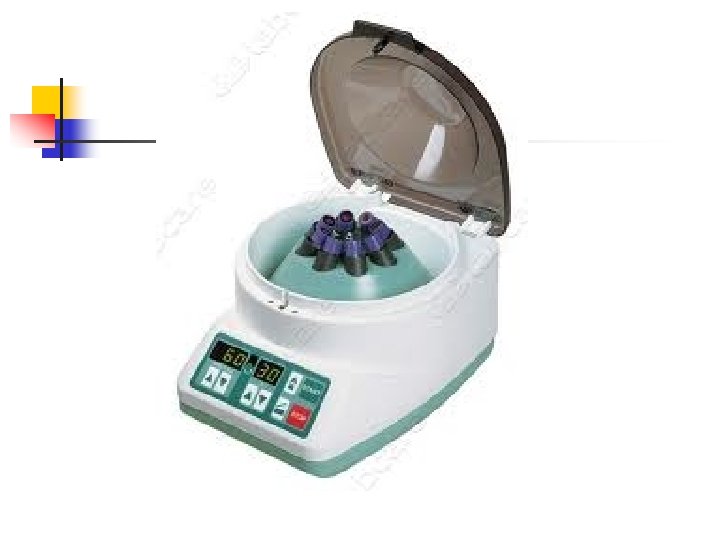 Lab Equipment- Centrifuge n n n n Centrifuges are used to spin samples down at high rates of speed Blood and urine samples Used to separate or concentrate materials suspended in a liquid form Each time it is used it must be balanced Lid should be closed and secure, set for required spin time. No one should stand in front of centrifuge No one should stop motor or rotor manually.
