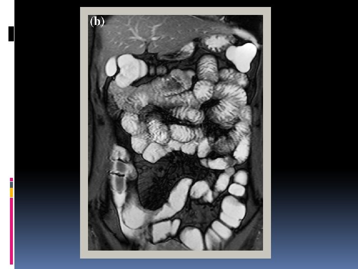 v. ADVANTAGES: Available Relatively cheap Excellent in evaluation the bowel lumen and mucosa v. DISADVANTAGES: Radiation highest of all modalities Poor in evaluating extra luminal pathologies