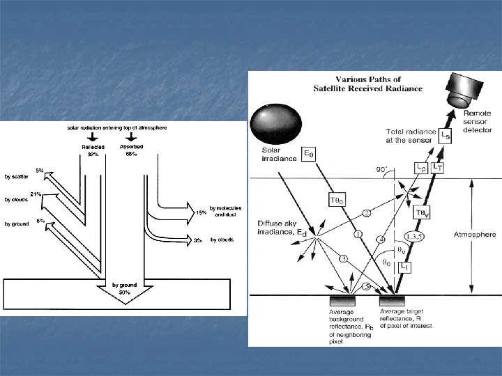 What is radiometric correction? n n Radiometric correction attempts to eliminate the effects on a pixel’s value by elements that are not part of the target These effects are commonly grouped as: Sensor influences n Terrain effects n Atmospheric effects n