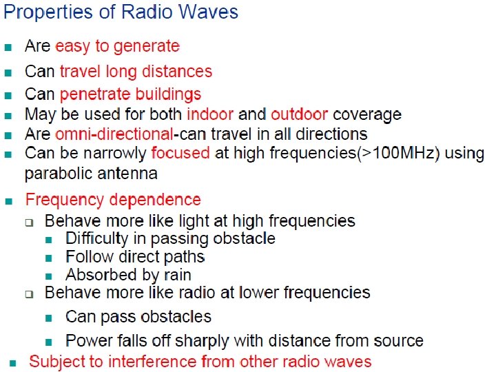 Radio wave Propagation • Most of the time, radio waves are not quite in free space. • Terrestrial propagation modes include: – Line-of-sight propagation – Space-wave propagation – Ground waves – Sky waves