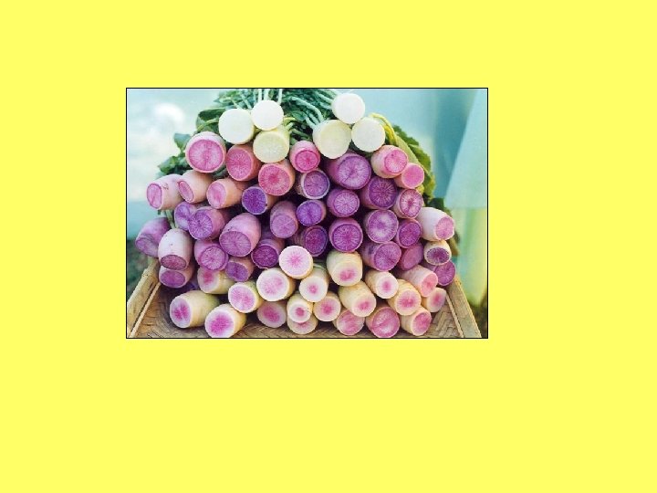 ► Young tender pods of rat tail radish are used as vegetable – no edible root is formed in this radish. ► The characteristic pungent flavour is due to the presence of volatile isothiocynates (4 -methyl thio-3 -butenyl isothiocyanate) – MTB-ITC. ► The colour of the pink cultivars is due to the presence of anthocyanin pigments. Spring radishes Very common, rapid growing and quick maturing (20 -30 days) Relatively small roots Root quality deteriorate quickly and mildly pungent Winter radishes Slow growing and maturing (50 -90 days) late Large roots Stored better and have characteristic strong flavour.
