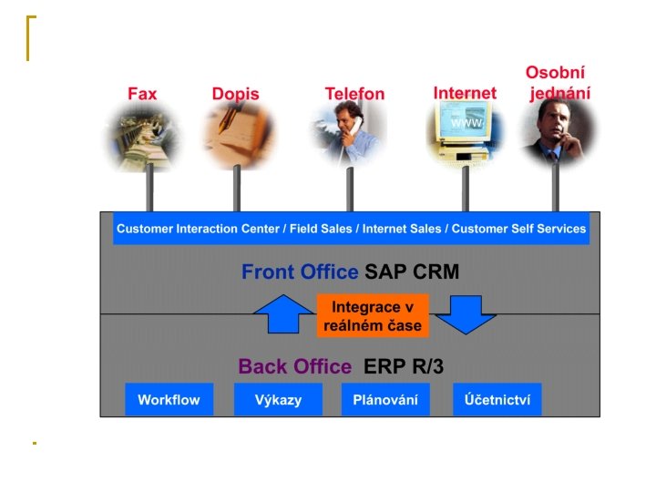 Aplikace Front-Office n n n Podpora prodejních aktivit (Sales Force Automation Podpora marketingových aktivit (Enterprise Marketing Automation) Podpora servisních aktivit (Customer Service Support)