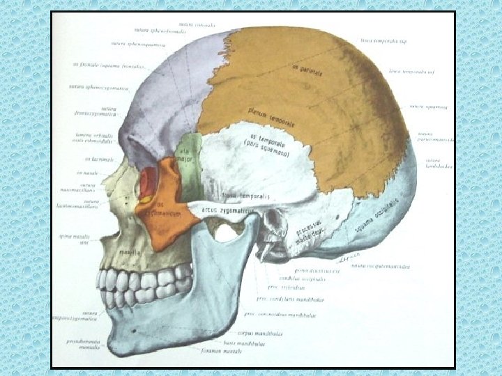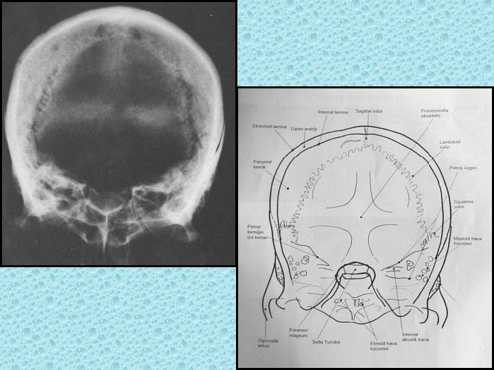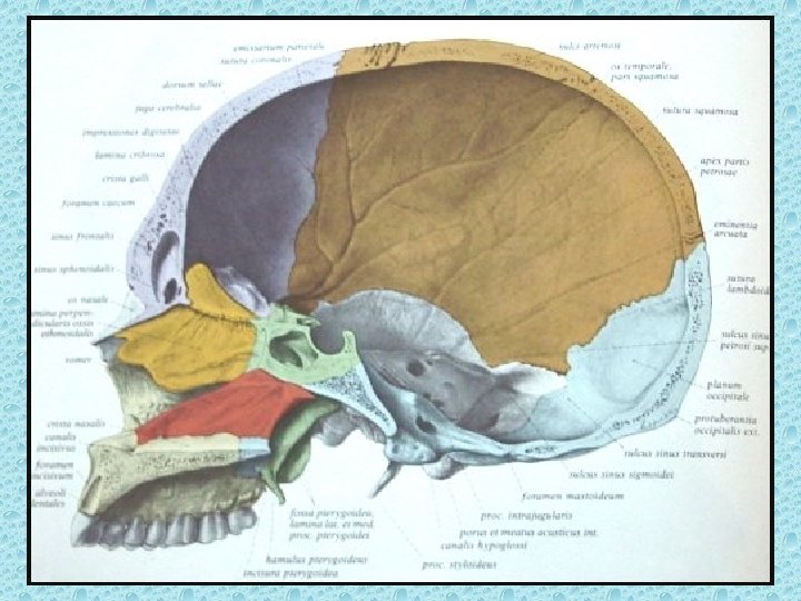 KRANYAL SÜTÜRLER • Koronal (Paryetal-frontal arasında) • Sagital (iki paryetal arasında) • Lambdoid (paryetal, temporal ile oksipital arasında) • Skuamoz (Paryetal-temporal arasında)