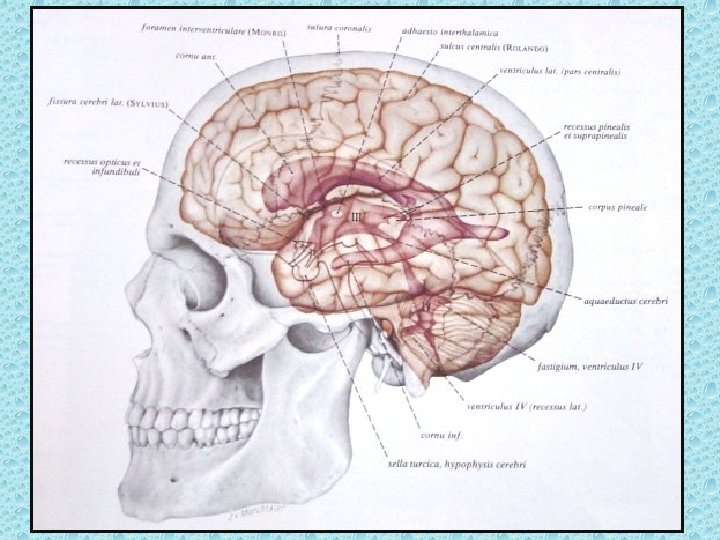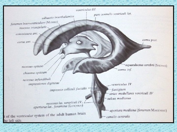 VENTRİKÜLLER • Lateral ventriküller: frontal, oksipital ve temporal hornlar, korpus ve atrium • Foramen monro • 3. Ventrikül • Akuaduktus silvii • 4. Ventrikül • Foramen Lucka (çift) ve magendi (tek)