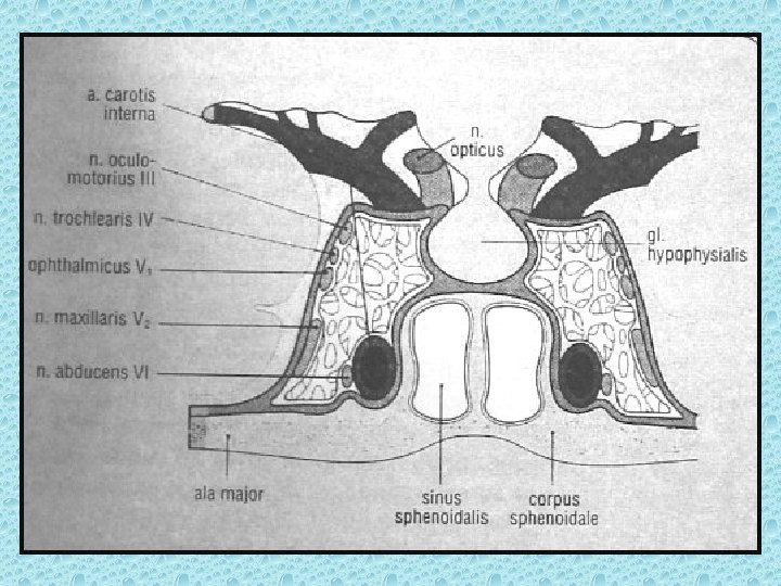 SELLA TURSİKA • • • Sfenoid kemik korpusundadır Anterior ve posterior clinoidler Hipofiz fossası Dorsum sella İçerisinde hipofiz bezi bulunur