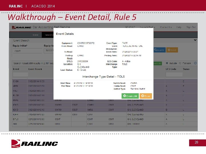 RAILINC I ACACSO 2014 +++++++++++++++++++++++++++++ Walkthrough – Event Search, Rule 5 +++++++++++++++++++++++++++++ 27